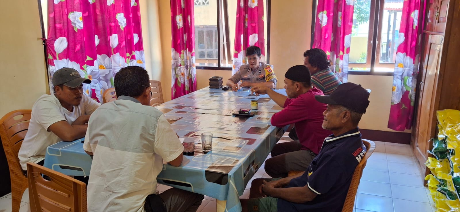 Pada kesempatan tersebut, Bhabinkamtibmas juga menyampaikan pesan-pesan kamtibmas serta mengimbau masyarakat untuk segera melapor kepada pihak kepolisian apabila terjadi permasalahan, agar dapat difasilitasi dengan bijak dan damai. Kegiatan berakhir pukul 11.30 Wita dalam keadaan aman dan terkendali